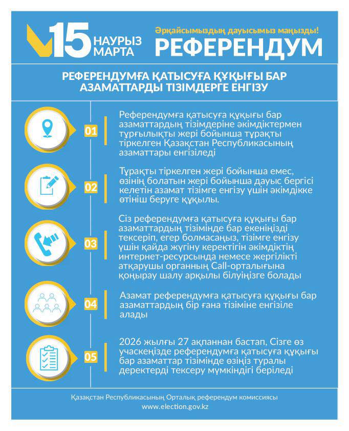 Мемлекет басшысы 2026 жылғы 15 наурызда республикалық референдум өткiзу туралы Жарлыққа қол қойды.