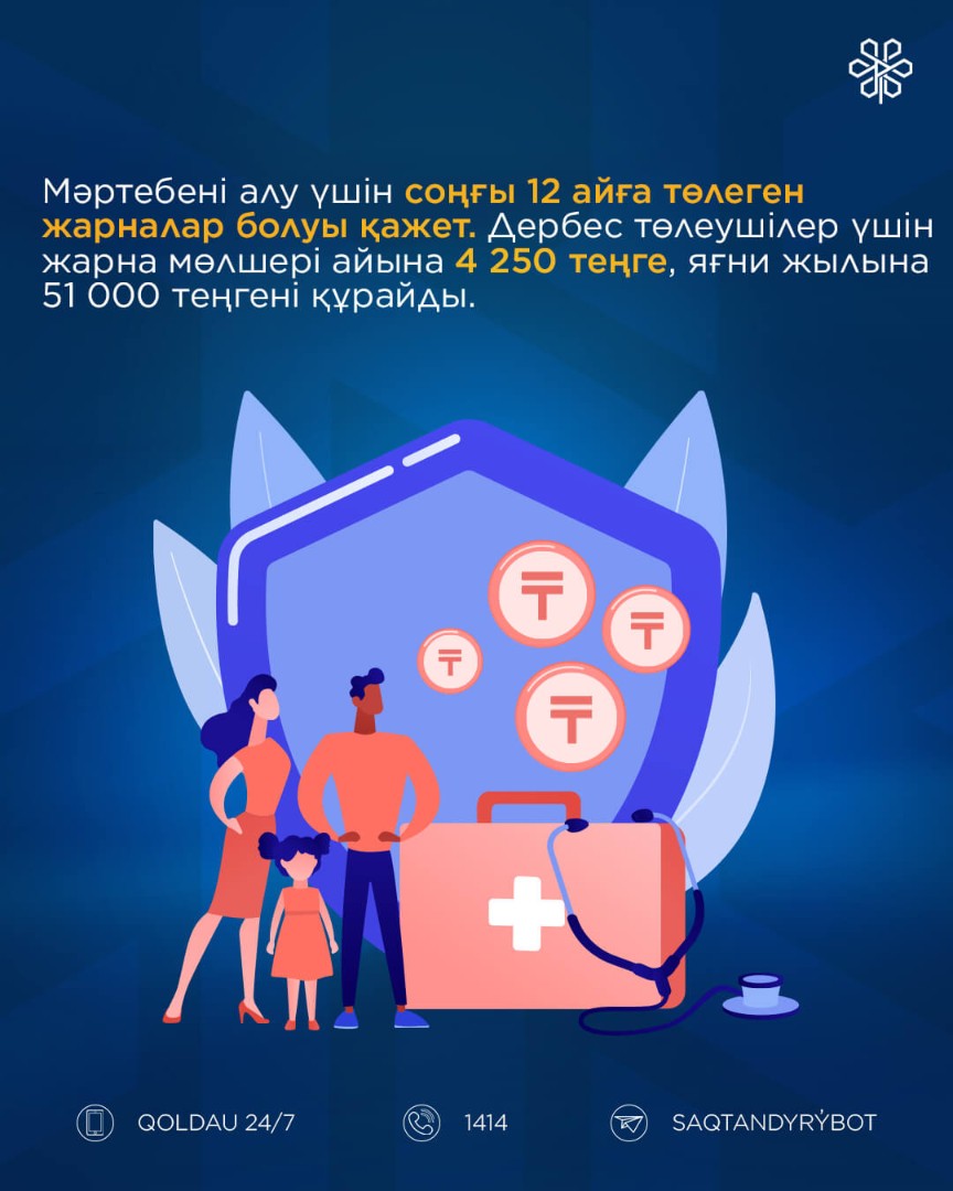 Мәртебені алу үшін соңғы 12 айға төлеген жарналар болуы қажет. Дербес төлеушілер үшін жарна мөлшері айына 4 250 теңге, яғни жылына 51 000 теңгені құрайды.