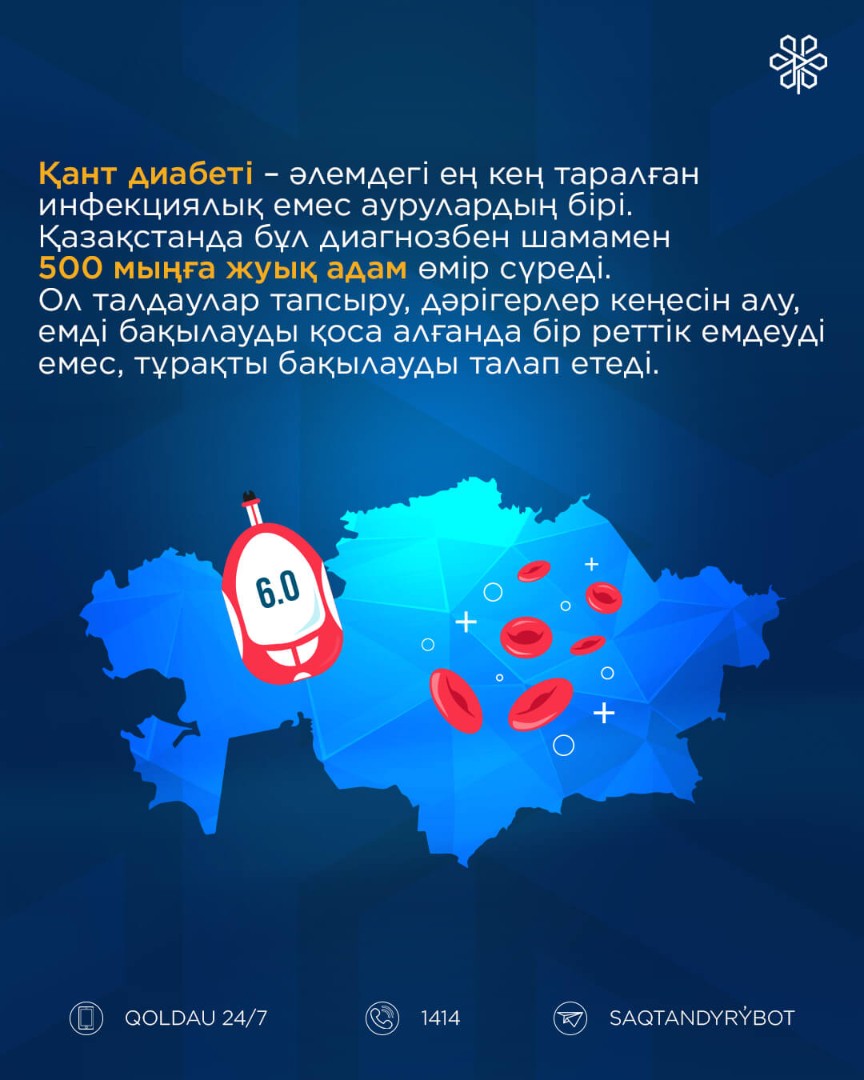 Қант диабеті - әлемдегі ең кең таралған инфекциялық емес аурулардың бірі. Қазақстанда бұл диагнозбен шамамен 500 мыңға жуық адам өмір сүреді. Ол талдаулар тапсыру, дәрігерлер кеңесін алу, емді бақылауды қоса алғанда бір реттік емдеуді емес, тұрақты бақылауды талап етеді.