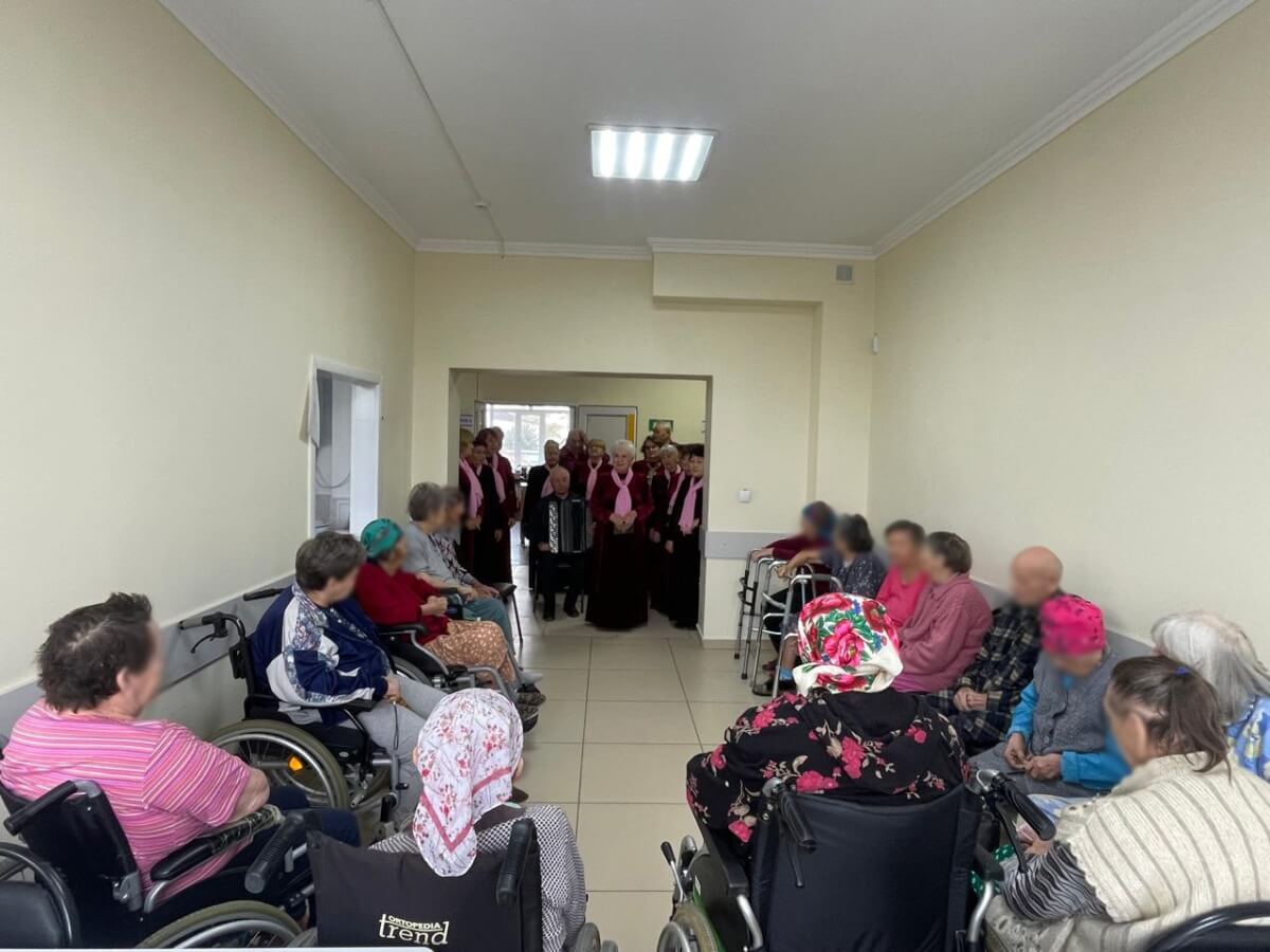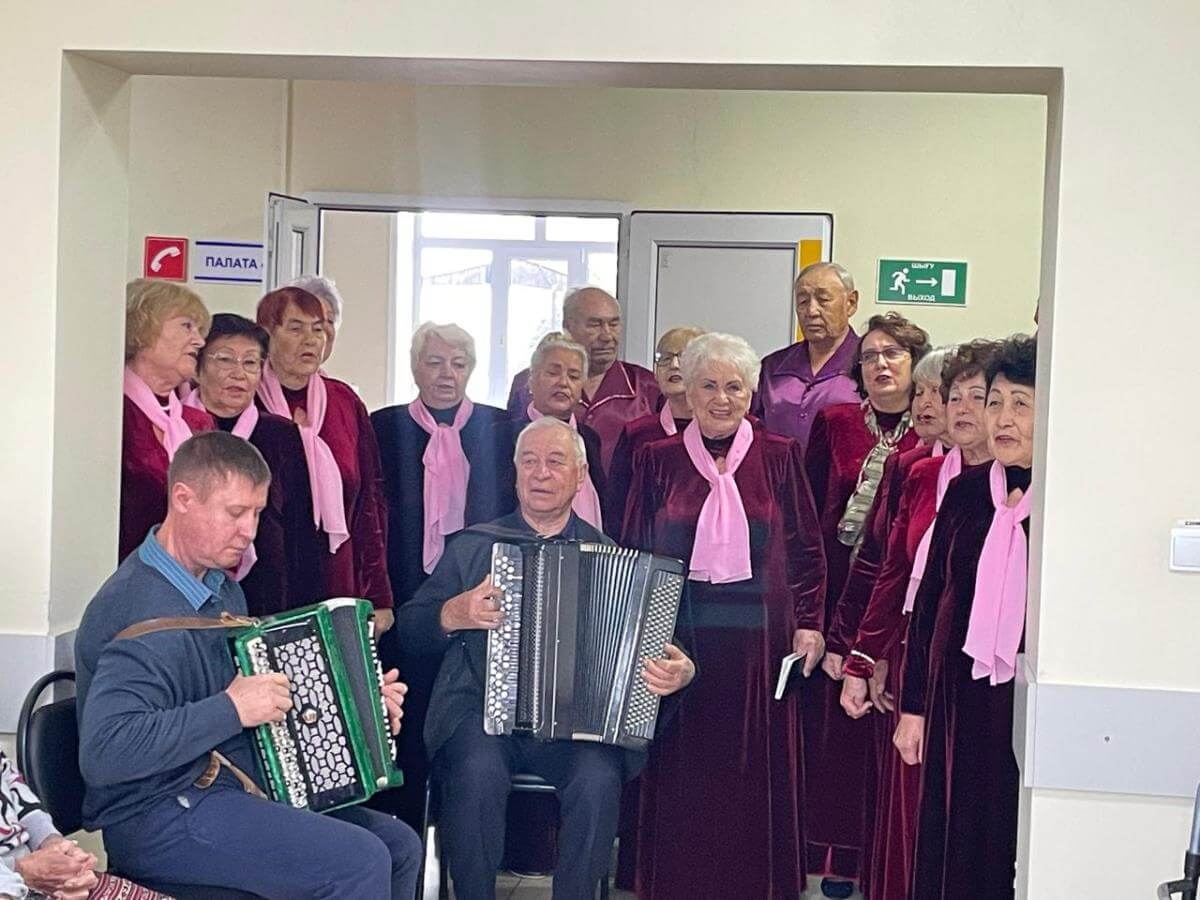 Первый день октября – особенный праздник, ведь это день уважения и почитания пожилого человека. Ежегодно в золотую осеннюю пору мы чествуем тех, кто все свои силы и знания посвятил своему народу, кто отдал здоровье и молодость молодому поколению. Летят года, за ними не угнаться – Спешат часы, сменяя день за днем. Но знаем, не устанем удивляться Тем временем, что осенью зовем. Возраст зрелых, мудрых людей часто называют осенью жизни. Как каждое время года прекрасно по-своему, так же неповторимы и возрастные «сезоны» нашей жизни. Какие бы беды ее не омрачали, все плохое забывается, и мы снова радуемся жизни, мечтаем о счастье, любви. Народный хор ветеранов в лице почетного гражданина РК Барабанова А.И. очень часто посещает наше медицинское учреждение с праздничной концертной программой и сегодня в День пожилого человека они посетили наше медицинское учреждение и подготовили праздничный концерт.
