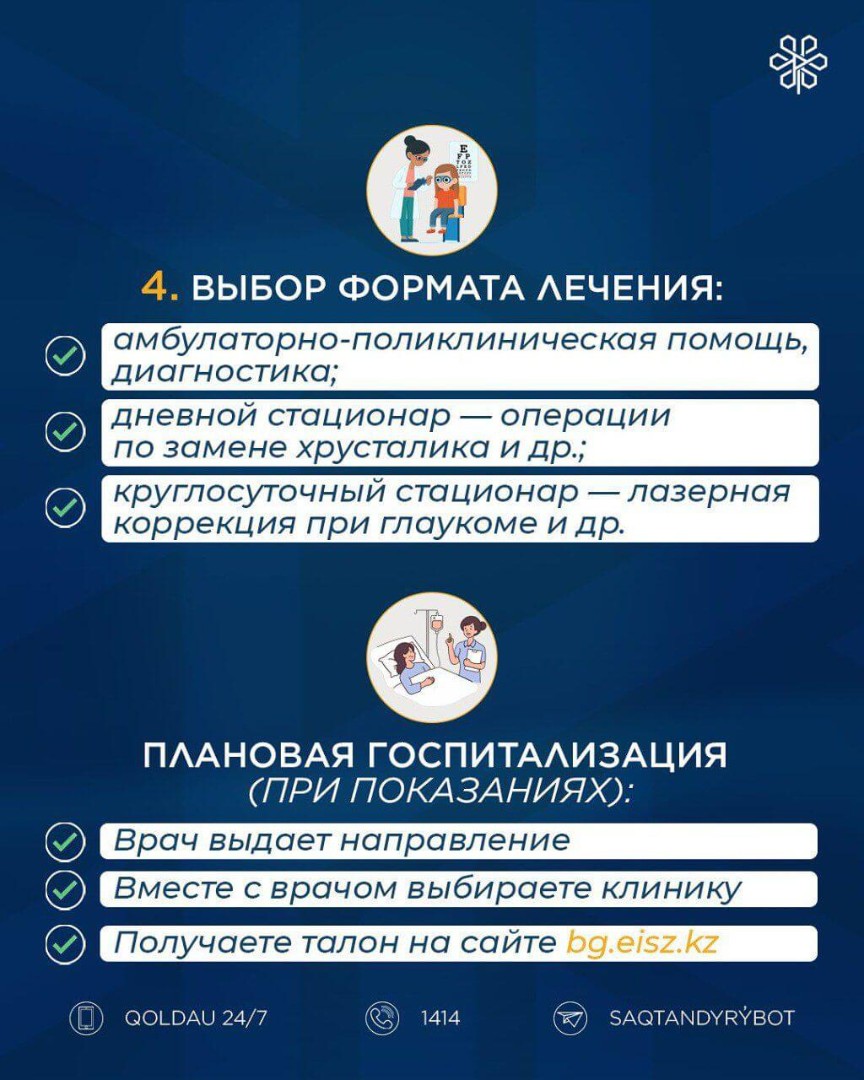 Медицинские организации, предоставляющие офтальмологическую помощь в системе ОСМС, оказывают помощь по трем основным направлениям: